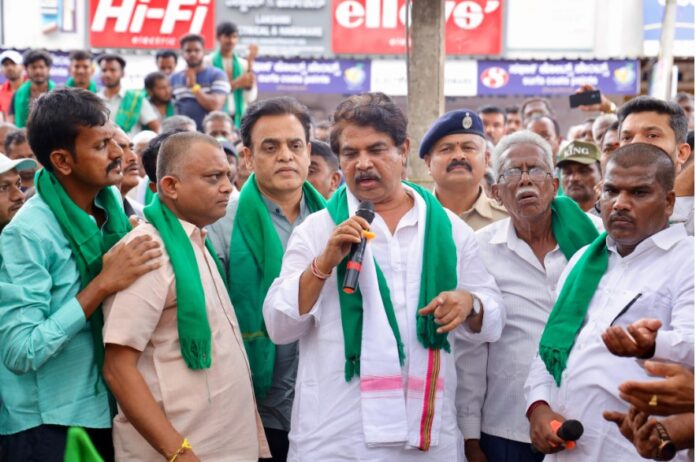 ರೈತರ ಪ್ರತಿಭಟನೆಯಲ್ಲಿ ಭಾಗವಹಿಸಿ ಮಾತನಾಡಿದ ಅವರು, ಗ್ರೇಟರ್‌ ಬೆಂಗಳೂರು ಹೆಸರಲ್ಲಿ ಕಾಂಗ್ರೆಸ್‌ ಸರ್ಕಾರ ಬಿಡದಿ, ಬೈರಮಂಗಲ ಮತ್ತು ಕಂಚುಗಾರನಹಳ್ಳಿಯಲ್ಲಿ 9,600 ಎಕರೆ ಜಮೀನನ್ನು ಸ್ವಾಧೀನ ಮಾಡುತ್ತಿದೆ. ಈ ಪೈಕಿ 6,500 ಎಕರೆ ಕೃಷಿಭೂಮಿ ಇದೆ. ಇಲ್ಲಿ 10 ಲಕ್ಷಕ್ಕೂ ಅಧಿಕ ತೆಂಗು ಹಾಗೂ ಮಾವಿನ ಮರಗಳಿವೆ. ಪ್ರತಿ ದಿನ 6 ಲಕ್ಷ ಲೀಟರ್‌ ಹಾಲು ಉತ್ಪಾದನೆಯಾಗಿ ಕೆಎಂಎಫ್‌ಗೆ ತಲುಪುತ್ತಿದೆ. 3 ಸಾವಿರಕ್ಕೂ ಅಧಿಕ ರೈತರು ಹಾಗೂ ಕಾರ್ಮಿಕರು ಕೃಷಿಯನ್ನು ನಂಬಿಕೊಂಡಿದ್ದಾರೆ. ಇಷ್ಟು ಫಲವತ್ತಾದ ಜಮೀನುಗಳನ್ನು ಸ್ವಾಧೀನ ಮಾಡಿಕೊಂಡು ಸೈಟುಗಳನ್ನು ನೀಡಲಾಗುತ್ತಿದೆ ಎಂದರು.