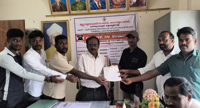 ಚಿಕ್ಕಬಳ್ಳಾಪುರ ಜಿಲ್ಲೆಯ ಬಾಗೇಪಲ್ಲಿ ಪಟ್ಟಣದ ಸರಕಾರಿ ಪದವಿ ಪೂರ್ವ ಕಾಲೇಜು ಆಟದ ಮೈದಾನದಲ್ಲಿ ನಿರ್ಮಾಣ ಮಾಡಲು ಉದ್ದೇಶಿಸಿರುವ ಗುರುಭವನ ನಿರ್ಮಾಣ ಯೋಜನೆಯನ್ನು ಕೈಬಿಟ್ಟು ಬೇರೆ ಸ್ಥಳದಲ್ಲಿ ನಿರ್ಮಾಣ ಮಾಡಬೇಕೆಂದು ಆಗ್ರಹಿಸಿ ತಾಲೂಕು ಎಸ್‌ಎಫ್‌ಐ ಮತ್ತು ಡಿವೈಎಫ್‌ವತಿಯಿಂದ ಕ್ಷೇತ್ರ ಶಿಕ್ಷಣಾಧಿಕಾರಿಗಳಿಗೆ ಕಾರ್ಯಕರ್ತರು ಮನವಿ ಸಲ್ಲಿಸಿದರು.
