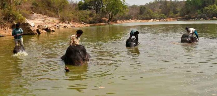ಬೆಂಗಳೂರು ನಗರ ಜಿಲ್ಲೆಯ ಆನೆಕಲ್ ತಾಲೂಕಿನಲ್ಲಿರುವ ಬನ್ನೇರುಘಟ್ಟ ಜೈವಿಕ ಉದ್ಯಾನ ಸುಮಾರು 731 ಹೆಕ್ಟೇರ್ ಪ್ರದೇಶ ಹೊಂದಿದೆ. ಇಲ್ಲಿ ಸಸ್ಯಹಾರಿ ಪ್ರಾಣಿಗಳ ಸಫಾರಿ, ಹುಲಿ-ಸಿಂಹ ಸಫಾರಿ, ಮೃಗಾಲಯ, ಕರಡಿ ಸಫಾರಿ ಸೇರಿದಂತೆ ವಿವಿಧ ಸಫಾರಿ ಮತ್ತು ಮೃಗಾಲಯದಲ್ಲಿ ಸುಮಾರು 3,000ಕ್ಕೂ ಹೆಚ್ಚು ಪ್ರಾಣಿಗಳಿದ್ದು, ಆನೆಗಳು ಪರಸ್ಪರ ನೀರು ಎರಚಿಕೊಂಡು ಬಿಸಿಲಿನ ಬೇಗೆಯನ್ನು ತಣಿಸಿಕೊಳ್ಳುತ್ತಿದ್ದು, ಬಿಸಿಲಿನ ಬೇಗೆಯಿಂದ ಮುಕ್ತಿ ಪಡೆಯಲು ನೀರಿನಲ್ಲಿಯೇ ಹೆಚ್ಚು ಸಮಯ ಕಳೆಯಲು ಇಷ್ಟ ಪಡುತ್ತಿವೆ.