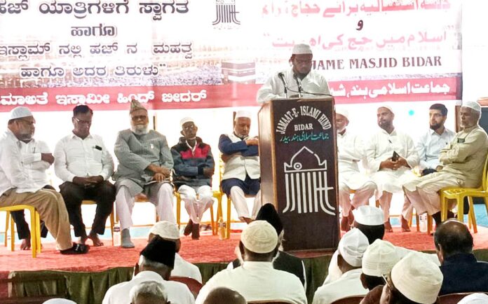 ಜಮಾ ಅತೆ ಇಸ್ಲಾಮಿ ಹಿಂದ್ನ ಬೀದರ್ ಘಟಕದ ವತಿಯಿಂದ ನಗರದ ಜಮೀಯಾ ಮಸೀದಿಯಲ್ಲಿ ಭಾನುವಾರ ಏರ್ಪಡಿಸಿದ್ದ ಹಜ್ ಯಾತ್ರಿಗಳ ಸ್ವಾಗತ ಕಾರ್ಯಕ್ರಮದಲ್ಲಿ ಅವರು ಮಾತನಾಡಿ, ‘ಹಜ್ ಏಕದೇವ ವಿಶ್ವಾಸಿಗರ ಅಂತರರಾಷ್ಟ್ರೀಯ ಸಮ್ಮೇಳನವಾಗಿದ್ದು, ಕಾಬಾ ದೇವ ಭವನವು ಸಕಲರಿಗೆ ಸಮೃದ್ಧಿ ಹಾಗೂ ಸನ್ಮಾರ್ಗ ದರ್ಶನದ ಕೇಂದ್ರವಾಗಿದೆʼ ಎಂದು ಬಣ್ಣಿಸಿದರು.