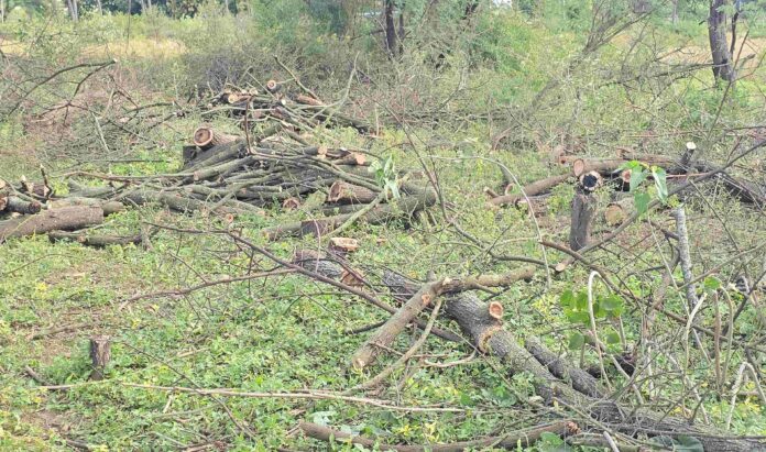 ಅರಣ್ಯ ಇಲಾಖೆಯ ಅನುಮತಿಯನ್ನೂ ಪಡೆಯದೆ ನೂರಾರು ಮರಗಳನ್ನು ಕಡಿದು ನೆಲಕ್ಕುರುಳಿಸಿರುವ ದೃಶ್ಯ ಚಿಂತಾಮಣಿ ಅಂಬಾಜಿದುರ್ಗ ಹೋಬಳಿಯ ಉಪ್ಪಾರಪೇಟೆ ಹಾಗೂ ರಾಯಪಲ್ಲಿ ಮಧ್ಯದಲ್ಲಿ ಬರುವ ಕೆರೆ ಅಂಗಳದಲ್ಲಿ ಕಂಡುಬಂದಿದೆ.