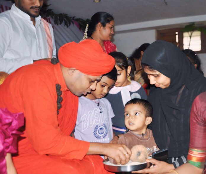 ಅಕ್ಷರಾಭ್ಯಾಸ ಕಾರ್ಯಕ್ರಮದಲ್ಲಿ ಭಾಗವಹಿಸಿದ ಭೋವಿ ಗುರುಪೀಠದ ಇಮ್ಮಡಿ ಸಿದ್ದರಾಮೇಶ್ವರ ಶ್ರೀಗಳು ಮಕ್ಕಳ ಪ್ರಥಮ ಅಕ್ಷರಭ್ಯಾಸ ಮಾಡಿಸಿದರು. ಅಕ್ಷರಾಭ್ಯಾಸ ಕಾರ್ಯಕ್ರಮ ನೆರವೇರಿಸಿ ಮಾತನಾಡಿದ ಶ್ರೀಗಳು “ಅಕ್ಷರ ಎಂಬ ಶಬ್ಧಕ್ಕೆ ನಾಶವಿಲ್ಲದಿರುವುದು ಎಂದರ್ಥ. ಮೌಲಿಕವಾಗಿ ಇದು ನಾಶವಿಲ್ಲದ ಪರತತ್ವವನ್ನೇ ಹೇಳುತ್ತದೆ. ಅಭ್ಯಾಸವೆಂದರೆ ಆ ತತ್ವಕ್ಕೆ ತನ್ನನ್ನು ಅಭಿಮುಖವಾಗಿ ಇರಿಸಿಕೊಳ್ಳುವುದು” ಎಂದು ಅರ್ಥೈಸಿದರು.