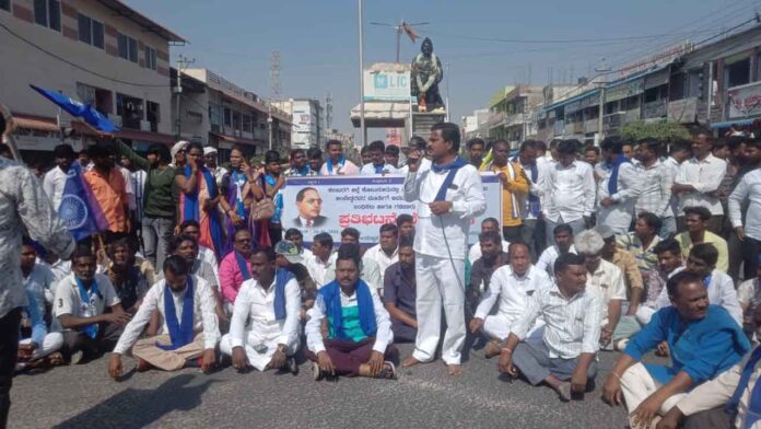 ಕಲಬುರಗಿಯಲ್ಲಿ ಅಂಬೇಡ್ಕರ್ ಪ್ರತಿಮೆಗೆ ಅಪಮಾನ ಮಾಡಿರುವ ಕಿಡಿಗೇಡಿಗಳನ್ನು ದೇಶದ್ರೋಹ ಪ್ರಕರಣದಡಿ ಗಡಿಪಾರು ಮಾಡಬೇಕೆಂದು ಒತ್ತಾಯಿಸಿ ದಲಿತ ಸಂಘಟನೆಗಳ ಒಕ್ಕೂಟ ಯಾದಗಿರಿಯಲ್ಲಿ ಪ್ರತಿಭಟನೆ ನಡೆಸಿದೆ.