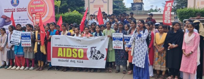 ರಾಜ್ಯದ ಸರ್ಕಾರಿ ವೈದ್ಯಕೀಯ ಕಾಲೇಜುಗಳಲ್ಲಿ 15% ಎನ್ಆರ್ಐ ಕೋಟಾವನ್ನು ರದ್ದುಪಡಿಸಲು ಆಗ್ರಹಿಸಿ ಎಐಡಿಎಸ್ಓ ದಾವಣಗೆರೆ ಜಿಲ್ಲಾ ಸಮಿತಿ ನೇತೃತ್ವದಲ್ಲಿ ನೂರಾರು ವಿದ್ಯಾರ್ಥಿಗಳು ದಾವಣಗೆರೆಯ ಜಯದೇವ ವೃತ್ತದಲ್ಲಿ ಪ್ರತಿಭಟನೆ ನಡೆಸಿ ಅನಿವಾಸಿ ಭಾರತೀಯ (NRI) ಕೋಟಾ ರದ್ದು ಮಾಡಲು ಒತ್ತಾಯಿಸಿದರು.