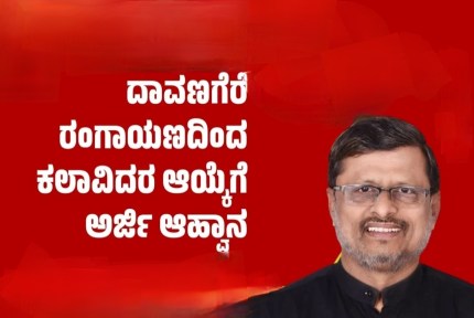 ದಾವಣಗೆರೆಯ ವೃತ್ತಿ ರಂಗಭೂಮಿ- ರಂಗಾಯಣದಿಂದ ನಾಟಕಗಳ ಸಿದ್ಧತೆ, ರಂಗ ತರಬೇತಿ, ರಂಗ ಪ್ರದರ್ಶನ ಹಾಗೂ ರಂಗ ಶಿಬಿರಗಳಂತಹ ರಂಗ ಚಟುವಟಿಕೆಗಳಲ್ಲಿ, ರಂಗಾಯಣವು ಸಿದ್ಧಪಡಿಸುವ ನಾಟಕಗಳ ತರಬೇತಿಗೆ ತೊಡಗಿಸಿಕೊಳ್ಳಲು 12 ಜನ ಕಲಾವಿದರ ಆಯ್ಕೆಗೆ ಅರ್ಜಿ ಆಹ್ವಾನಿಸಲು ಮುಂದಾಗಿದೆ.