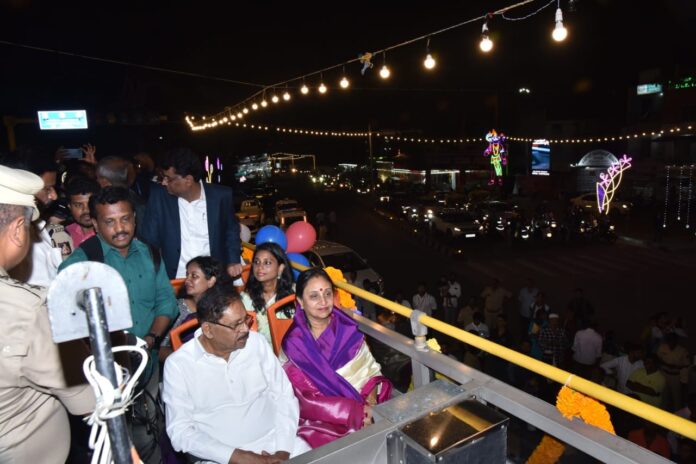 ಅಂಬಾರಿ ಡಬಲ್ ಡೆಕ್ಕರ್ ಬಸ್ ಪ್ರಯಾಣಕ್ಕೆ ಚಾಲನೆ  : ನಗರದಲ್ಲಿ ಅಕ್ಟೋಬರ್ 2ರವರೆಗೆ ಅದ್ದೂರಿಯಾಗಿ ಜರುಗಲಿರುವ ದಸರಾ ವೈಭವ ಹಾಗೂ ದೀಪಾಲಂಕಾರವನ್ನು ಸಾರ್ವಜನಿಕರು ಕಣ್ತುಂಬಿಕೊಳ್ಳಲು ಉಚಿತವಾಗಿ ಪ್ರಯಾಣಿಸಲು ಅವಕಾಶ ಕಲ್ಪಿಸಿರುವ ಅಂಬಾರಿ ಡಬಲ್ ಡೆಕ್ಕರ್ ಬಸ್ಸಿಗೆ ಗೃಹ ಹಾಗೂ ಜಿಲ್ಲಾ ಉಸ್ತುವಾರಿ ಸಚಿವ ಡಾ: ಜಿ. ಪರಮೇಶ್ವರ ಅವರು ಸೋಮವಾರ ಸಂಜೆ ಬಿ.ಜಿ.ಎಸ್. ವೃತ್ತದಲ್ಲಿ ಚಾಲನೆ ನೀಡಿದರು.
