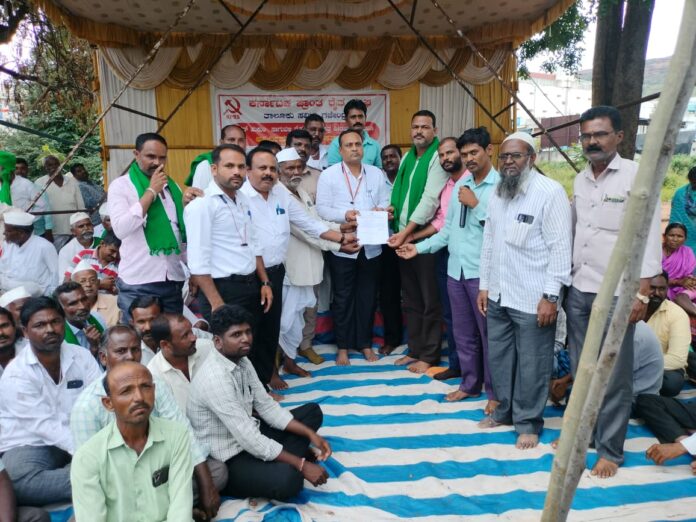 “ಕಳೆದ ಮೂರು ದಿನಗಳಿಂದ ತಹಶಿಲ್ದಾರ ಕಚೇರಿ ಮುಂಭಾಗದಲ್ಲಿ ನಡೆದ ಬಗರ್ ಹುಕುಂ ಸಾಗುವಳಿದಾರರಿಗೆ ಹಕ್ಕುಪತ್ರ, ಸಾಗುವಳಿ ಚೀಟಿಗಾಗಿ ಒತ್ತಾಯಿಸಿ ನಡೆದ ಅನಿರ್ದಿಷ್ಟವಧಿ ಧರಣಿ ಸತ್ಯಾಗ್ರಹ ಲಿಖಿತ ಭರವಸೆ ನೀಡಿದ ಬಳಿಕ ಸಾಂಕೇತಿಕವಾಗಿ ಮೊಟುಕುಗೊಳಿಸಲಾಯಿತು.