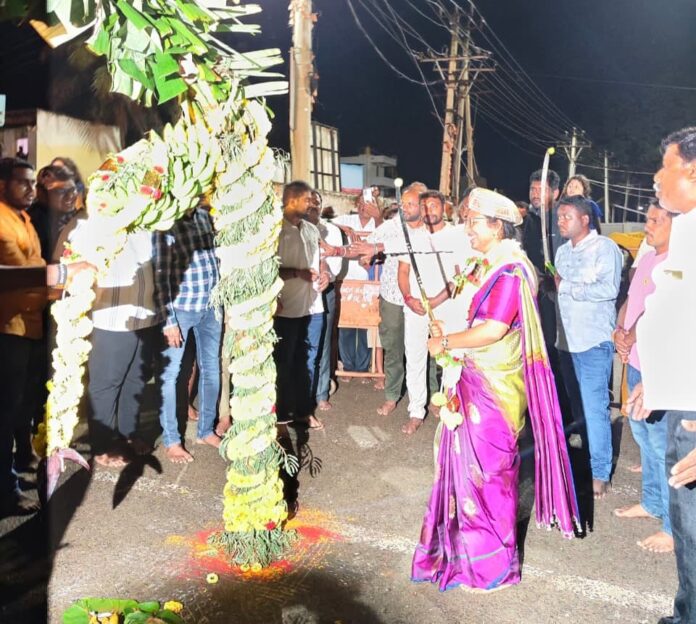 ವಿಜಯದಶಮಿ ಪ್ರಯುಕ್ತ ಪಟ್ಟಣದ ಪ್ರಮುಖ ದೇವಾಲಯದಲ್ಲಿ ಲೋಕ ಕಲ್ಯಾಣಕ್ಕಾಗಿ ವಿಶೇಷ ಪೂಜೆ ಸಲ್ಲಿಸಿ ಮೆರವಣಿಗೆ ಮೂಲಕ ಬನ್ನಿ ಮಂಟಪ ತಲುಪಿದ ತಹಶೀಲ್ದಾರ್ ಆರತಿ.ಬಿ ಅವರು ಸತತ ಐದನೇ ಬಾರಿಗೆ ಶಮಿ ಪೂಜೆ ನೆರವೇರಿಸಿ ಅಂಬು ಹಾಯುವ ಮೂಲಕ ವಿಜಯದಶಮಿ ಹಬ್ಬವನ್ನು ಸಂಪನ್ನ ಗೊಳಿಸಿದರು.