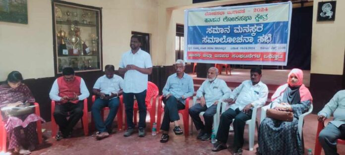 ಲೋಕಸಭಾ ಚುನಾವಣೆ ಹಿನ್ನೆಲೆಯಲ್ಲಿ ʼಬಿಜೆಪಿ-ಜೆಡಿಎಸ್ ಸೋಲಿಸಿ, ಹಾಸನ ಉಳಿಸಿ ಅಭಿಯಾನʼದ ಅಂಗಾಗಿ ಹಾಸನ ಜಿಲ್ಲೆಯ ಸಕಲೇಶಪುರದ ನಂಜಮ್ಮ ಮಹಿಳಾ ಸಮಾಜದಲ್ಲಿ ಹಮ್ಮಿಕೊಂಡಿದ್ದ ಸಮಾನ ಮನಸ್ಕರ ಸಮಾಲೋಚನಾ ಸಭೆಯಲ್ಲಿ ಮಾತನಾಡಿದರು.