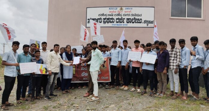 ಎಸ್ಎಫ್ಐ ಮುಖಂಡ ಅರುಣ್ ನಾಗವತ್ ಮಾತನಾಡಿ, “ಕೂಡಲೇ ಸರ್ಕಾರ ನಿರ್ಮಾಣವಾಗಿರುವ ಸರ್ಕಾರಿ ಪರಿಶಿಷ್ಟ ಜಾತಿ ಹಾಗೂ ಪರಿಶಿಷ್ಟ ಪಂಗಡದ ವಸತಿಯುತ ಸರ್ಕಾರಿ ಪ್ರಥಮ ದರ್ಜೆ ಕಾಲೇಜ್ ಗಳಲ್ಲಿಯೇ ಶೀಘ್ರವಾಗಿ ಅಗತ್ಯ ಮೂಲಭೂತ ಸೌಕರ್ಯಗಳು, ಖಾಯಂ ಪ್ರಾಂಶುಪಾಲರು, ಬೋಧಕ ಹಾಗೂ ಬೋಧಕೆತರ ಸಿಬ್ಬಂದಿ ನೇಮಕಾತಿ ಸೇರಿದಂತೆ ಸ್ವಂತ ಕಟ್ಟಡದಲ್ಲಿಯೇ ವಸತಿ ಸೌಲಭ್ಯ ಪ್ರಾರಂಭಿಸುವ ಜೊತೆಗೆ ಈ ಕೆಳಗಿನ ಬೇಡಿಕೆಗಳನ್ನು ಈಡೇರಿಸಲು ರಾಜ್ಯ ಸರ್ಕಾರ ಮುಂದಾಗಬೇಕು” ಎಂದು ಒತ್ತಾಯಿಸಿದರು.