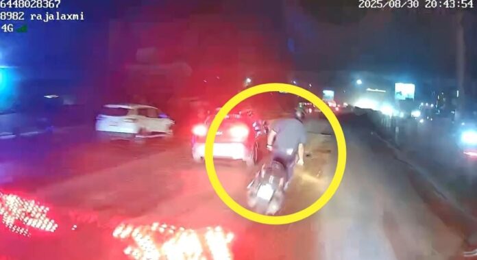 ಮಂಗಳೂರಿನ ನಂತೂರು ಸಮೀಪ ನಿನ್ನೆ ಸಂಜೆ ನಡೆದ ಘಟನೆ ಭಾರೀ ಚರ್ಚೆಗೆ ಕಾರಣವಾಗಿದೆ. ಕೆಪಿಟಿಯಿಂದ ನಂತೂರು ಕಡೆಗೆ ಸಾಗುತ್ತಿದ್ದ 15 ನಂಬರ್ ರಾಜಲಕ್ಷ್ಮಿ ಬಸ್ಸನ್ನು ಮುಂದೆ ಹೋಗುತ್ತಿದ್ದ ಬೈಕ್‌ ಸವಾರ ಓವರ್ ಟೇಕ್ ಮಾಡುವ ಭರದಲ್ಲಿ ರಸ್ತೆಯ ಮೇಲಿನ ಹೊಂಡಕ್ಕೆ ಸಿಕ್ಕಿ ಬಿದ್ದಿದೆ.