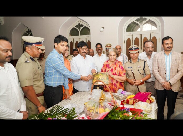 ಭಾನುವಾರ ಅರಮನೆಯಲ್ಲಿರುವ ಅಂಬಾವಿಲಾಸ ನಿವಾಸದಲ್ಲಿ ರಾಜವಂಶಸ್ಥರಾದ ಪ್ರಮೋದಾದೇವಿ ಒಡೆಯರ್ ಅವರನ್ನು ಭೇಟಿಯಾಗಿ ಸಾಂಪ್ರದಾಯಿಕವಾಗಿ ಫಲತಾಂಬೂಲ ಹಾಗೂ ಆಮಂತ್ರಣ ಪತ್ರಿಕೆ ನೀಡಿ ದಸರಾ ಉತ್ಸವಕ್ಕೆ ಆತ್ಮೀಯವಾಗಿ ಆಹ್ವಾನಿಸಿದರು. ಬಳಿಕ ಸರ್ಕಾರದಿಂದ ಪ್ರತಿವರ್ಷ ನೀಡಲಾಗುವ ಗೌರವಧನದ (ಚೆಕ್) ನೀಡಿದರು.
