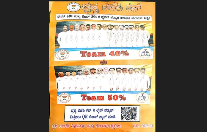 ಪೋಸ್ಟರ್‌ನಲ್ಲಿ ‘ಭ್ರಷ್ಟ ಬಿಜೆಪಿ ಕಪ್; ಟೀಮ್ 40% ಮತ್ತು ಟೀಮ್ 50% ನಡುವೆ ಫೈನಲ್ ಪಂದ್ಯದ ಹಣಾಹಣಿ ಮರೆಯದೇ ವೀಕ್ಷಿಸಿ’ ಎಂದು ಬರೆಯಲಾಗಿದೆ. ಈ ಪೋಸ್ಟರ್‌ಗಳನ್ನು ಯಾರು ಅಂಟಿಸಿದ್ದಾರೆ ಎಂಬ ಬಗ್ಗೆ ಮಾಹಿತಿ ಲಭ್ಯವಾಗಿಲ್ಲ. ನೆಲಮಂಗಲ ನಗರದ ಉಪನೊಂದಣಾಧಿಕಾರಿ ಕಚೇರಿ ಸೇರಿದಂತೆ ಹಲವೆಡೆ ಭಿತ್ತಿ ಪತ್ರ ಅಂಟಿಸಲಾಗಿದೆ.
