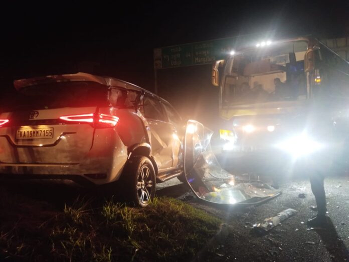 ಉಡುಪಿ ಕಡೆಯಿಂದ ದಾವಣಗೆರೆಗೆ ಕುಂದಾಪುರ ಮಾರ್ಗವಾಗಿ ಹೋಗುತ್ತದೆ ಖಾಸಗಿ ಬಸ್, ಸಂತೆಕಟ್ಟೆಯ ರೋಬೋಸಾಪ್ಟ್ ಬಳಿ ಇರುವ ಡಿವೈಡರ್ ಗೆ ಯೂ ಟರ್ನ್ ಮಾಡುತ್ತಿದೆ ಕ್ರಿಸ್ಟ ಫಾರ್ಚೂನರ್ ಕಾರ್ ಗೆ ನಡುವೆ ಡಿಕ್ಕಿ ಸಂಭವಿಸಿದೆ. ಘಟನೆಯಿಂದ ಕಾರು ಮತ್ತು ಬಸ್ ಜಖಂ ಗೊಂಡಿದ್ದು, ಕಾರಿನಲ್ಲಿದ್ದ ಪ್ರಯಾಣಿಕರಿಗೆ ಸಣ್ಣ ಪುಟ್ಟ ಗಾಯಗಳಾಗಿವೆ ಎಂದು ತಿಳಿದುಬಂದಿದೆ. ಸ್ಥಳಕ್ಕೆ ಎಸ್ ಐ ಪ್ರಕಾಶ್ ಎಸ್ ಭೇಟಿ ನೀಡಿದ್ದು ಪರಿಶೀಲನೆ ನಡೆಸಿದ್ದಾರೆ.