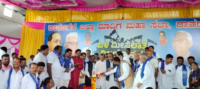 ಶೋಷಿತ ಸಮುದಾಯಗಳಿಗೆ ರಾಜ್ಯ ಸರ್ಕಾರ ಒಳಮೀಸಲಾತಿ ವರ್ಗೀಕರಣ ಜಾರಿಗೊಳಿಸಿ ಮೀಸಲಾತಿಯಲ್ಲಿ ಸಾಮಾಜಿಕ ನ್ಯಾಯ ಒದಗಿಸಿ ಆದೇಶ ನೀಡಿದ ಹಿನ್ನೆಲೆಯಲ್ಲಿ ದಾವಣಗೆರೆ ಜಿಲ್ಲಾ ಮಾದಿಗ ಮಹಾಸಭಾ ನೇತೃತ್ವದಲ್ಲಿ ಒಳಮೀಸಲಾತಿ ವಿಜಯೋತ್ಸವ ಆಚರಿಸಿದರು.