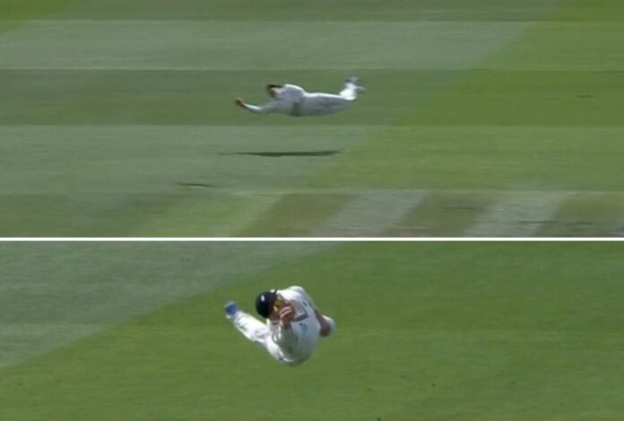ಟಿ20 ಪಂದ್ಯಗಳಲ್ಲಿ ಕಾಣಸಿಗುತ್ತಿದ್ದ ಅದ್ಭುತ ಕ್ಯಾಚ್‌ಗಳು ಈಗ ಟೆಸ್ಟ್‌ ಕ್ರಿಕೆಟ್‌ನಲ್ಲೂ ಸಖತ್ ಸುದ್ದಿಯಾಗುತ್ತಿದೆ. ಕೇನ್ ವಿಲಿಯಮ್ಸನ್‌ ನೇತೃತ್ವದ ನ್ಯೂಝಿಲ್ಯಾಂಡ್ ತಂಡ ಹಾಗೂ ಪ್ರವಾಸಿ ಆಸ್ಟ್ರೇಲಿಯಾದ ವಿರುದ್ಧ ಟೆಸ್ಟ್ ಸರಣಿ ನಡೆಯುತ್ತಿದೆ.