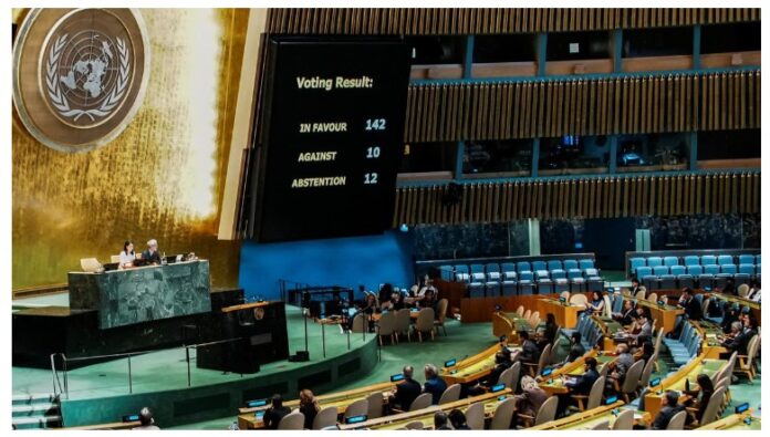 ಫ್ರಾನ್ಸ್ ಮಂಡಿಸಿದ ಈ ನಿರ್ಣಯಕ್ಕೆ 142 ರಾಷ್ಟ್ರಗಳು ಪರವಾಗಿ, 10 ರಾಷ್ಟ್ರಗಳು ವಿರುದ್ಧವಾಗಿ ಮತ ಚಲಾಯಿಸಿದವು. ಈ ವೇಳೆ 12 ರಾಷ್ಟ್ರಗಳು ಗೈರು ಹಾಜರಾದವು. ಆ ಮೂಲಕ ನಿರ್ಣಯಕ್ಕೆ ಅಂಗೀಕಾರ ದೊರಕಿತು.